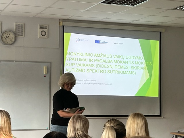 Spalio 9 d. Elektrėnų švietimo paslaugų centre vyko mokymai TŪM mokyklų pedagogams tema „Bendruomenės resursai ir parama specialiuosius poreikius turintiems vaikams. Kokybiškas įvairių poreikių mokinių ugdymas“. Renginį vedė Kauno Prano Daunio ugdymo centro pradinių klasių mokytoja metodininkė Laima Buliuolienė.