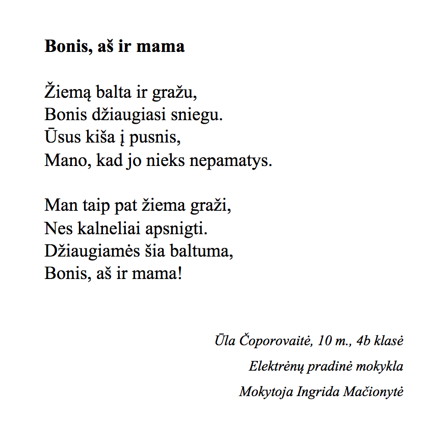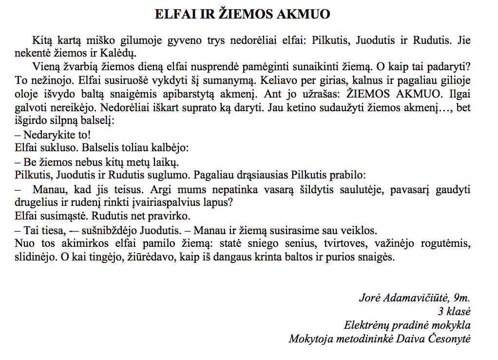 I Vieta I Vieta II Vieta II Vieta III Vieta Mingailė Juodytė, 9 m., 3 klasė Elektrėnų „Ąžuolyno“ progimnazija Mokytoja Irena Kybartienė