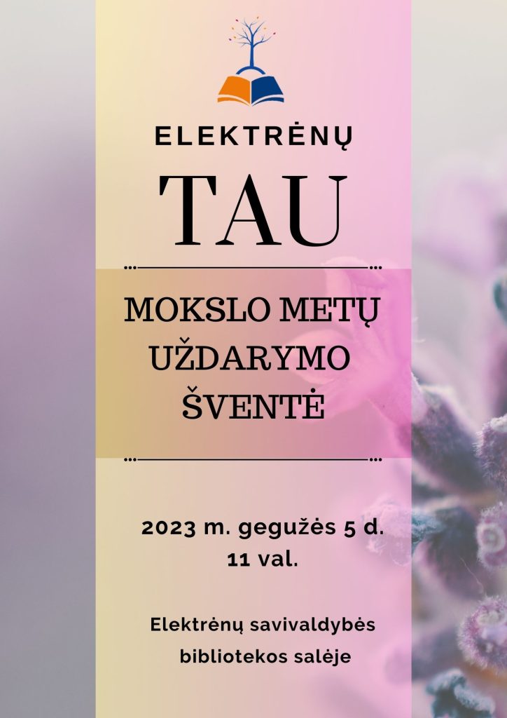 Mieli TAU klausytojai, kviečiame jus į Elektrėnų TAU 2022/2023 m. m. uždarymo šventę! Šventė vyks 2023 m. gegužės 5 d., 11 val., Elektrėnų bibliotekos salėje (Draugystės g. 2, Elektrėnai)
